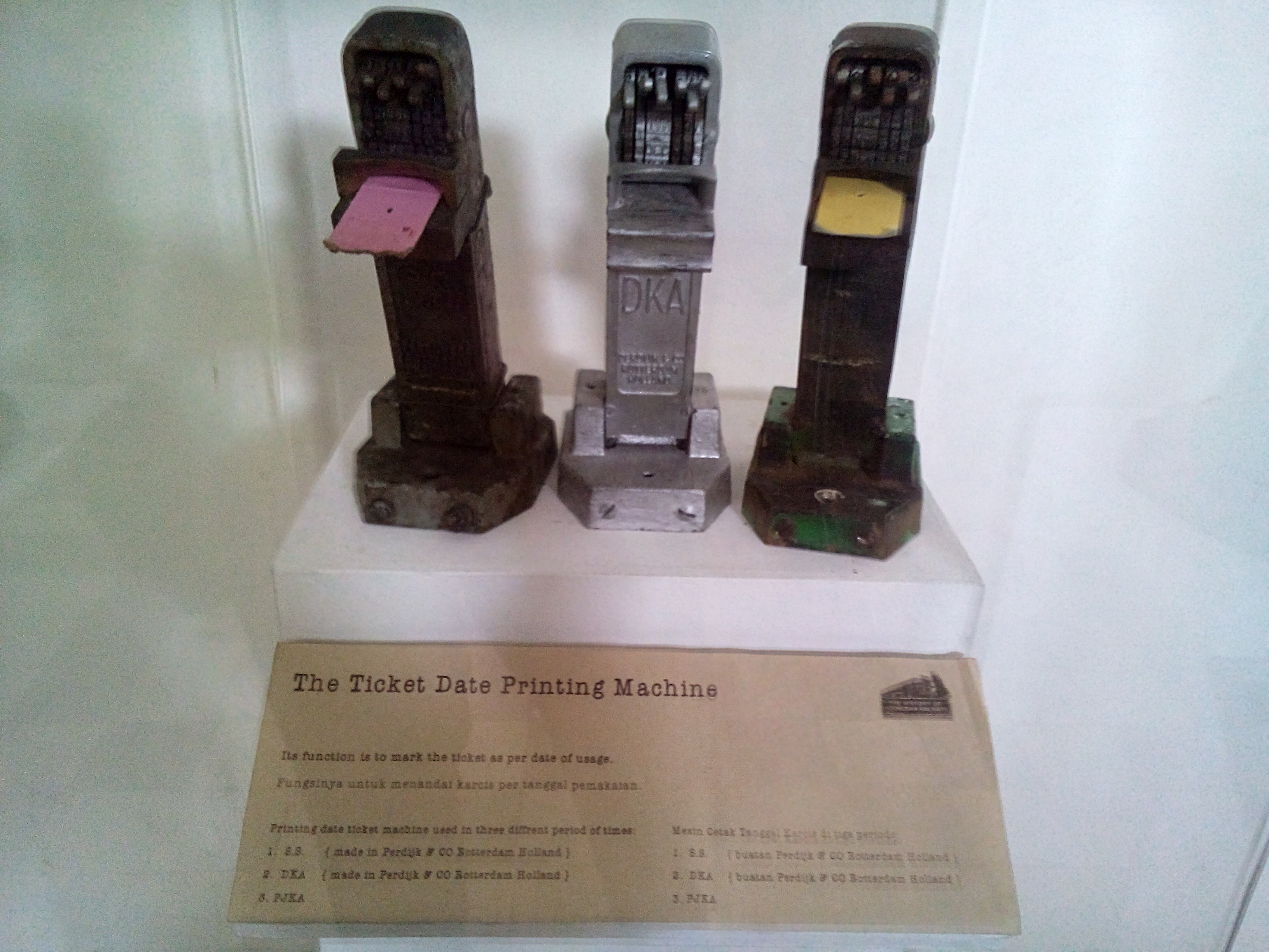 Salah satu yang menarik, peninggalan berupa mesin pencetak tiket dan contoh tiket kereta api lawas. Kalau sekarang sudah ada mesin Cetak Tiket Mandiri, yang touchscreen, tinggal pencet langsung keluar tiketnya. Kalau mesin tiket kereta api zaman dulu, masih sederhana dan manual.