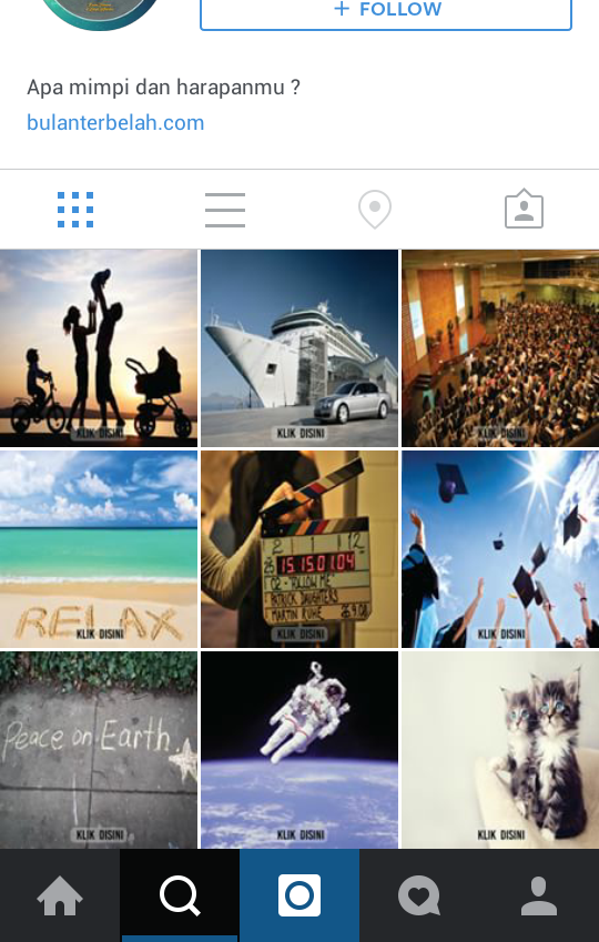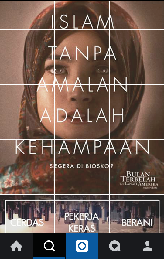 Karena memilih gambar membaca buku tersebut, aku terhubung dengan akun @menuju_pertanyaan_4e. Pertanyaan di akun ini adalah “Apa mimpi dan harapanmu?”. So simple, aku memilih gambar sebuah keluarga yang sedang bermain ketika senja. Caption dalam gambar tersebut adalah “Memiliki keluarga kecil yang indah adalah tujuan hidupku”. Ternyata pertanyaan tersebut adalah pertanyaan terakhir, karena kemudian aku terhubung dengan akun @karakter_btdla_b. Dan jreng jreng, yang muncul di akun tersebut adalah gambar salah satu tokoh di film BTDLA ini yang dibuat dalam bentuk grid 5×3.