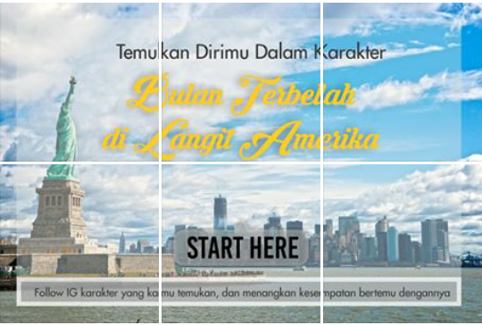 Pertama, masuk ke akun Instagram @hanumrais atau @bulan terbelah. Di kedua akun Instagram ini terlihat satu buah gambar yang tersusun dari grid 2×3. Gambar ini bertuliskan “Temukan Dirimu Dalam Karakter Bulan Terbelah di Langit Amerika” yang di bawahnya terdapat tulisan “Start Here”. Untuk memulai tes, klik gambar yang ada tulisan “Start Here” tersebut.