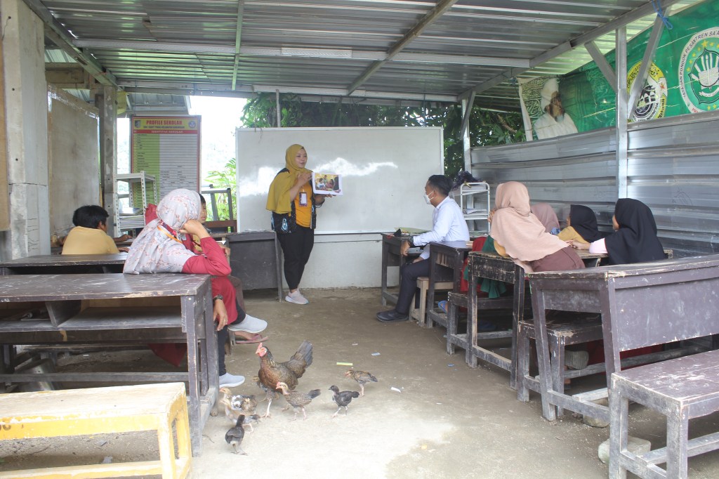 Bahkan ketika para relawan mengajar di kelas, tidak jarang kami ditemani oleh ayam-ayam yang masuk ke lorong-lorong kursi dan bangku di ruangan yang sangat tidak layak disebut dengan “kelas”. Ruangan tanpa sekat pun membuat siswa gampang teralihkan konsentrasinya karena mendengar proses belajar mengajar di “ruangan” lain.