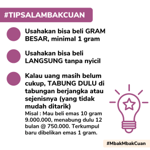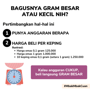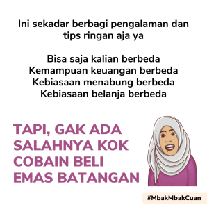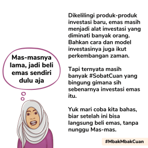 Yang pasti buat yang cewek-cewek, bisa kok mulai beli emas, tanpa nungguin dibeliin Mas-mas.