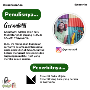Ketika #NeserBacaApa buku ini, ternyata menarik banget. Pengalaman penulis Gernatatiti ketika membersamai anak-anak SMA di SALAM sungguh membuka mata bahwa anak SMA pun sudah bisa melakukan riset sederhana.