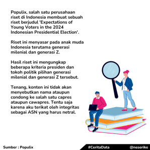Kali ini, salah satu lembaga riset bernama Populix membuat riset berjudul “‘Expectations of Young Voters in the 2024 Indonesian Presidential Election”.